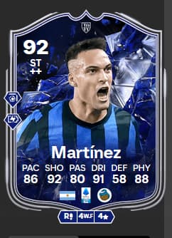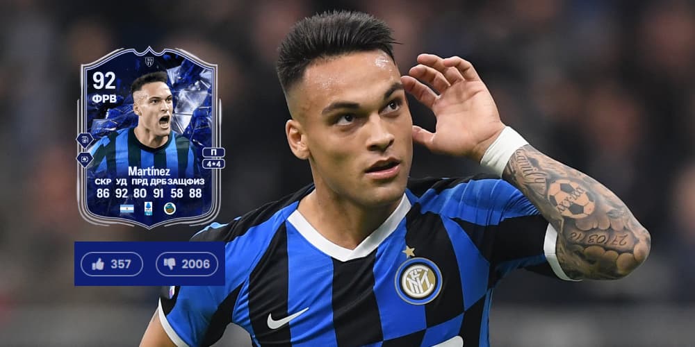 Эта карта Мартинеса словила кучу минусов на Futbin. Дело в том, что ее можно получить только в ИПК за 285 тысяч монет, но продать ее не получится. Из минусов: бесполезный плейстайл «упорство» и низкий пейс по сравнению с другими карточками, которые можно взять за те же 250-300к. Плюс всего один: золотой финесс.
