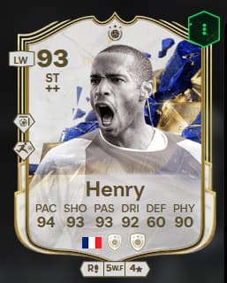 Говорят, это лучшая карта Анри за все годы Ultimate Team. Мощный пейс, невероятные удары, золотой финесс и возможность поставить на фланг без потери качества – абсолютный мастхэв, хоть и стоит почти 6кк. К его модельке, правда, нужно немного попривыкнуть, но после этого Анри станет лучшим в вашем составе.