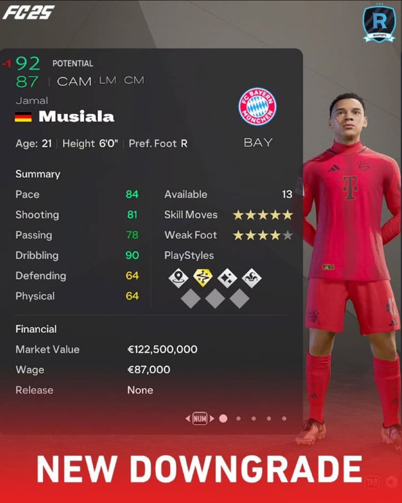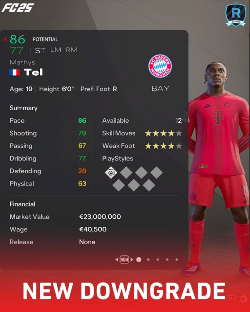 Звездочке «Баварии» отобрали потенциал, понизив его на одну единицу. Хотя на общее положение вещей это мало влияет.