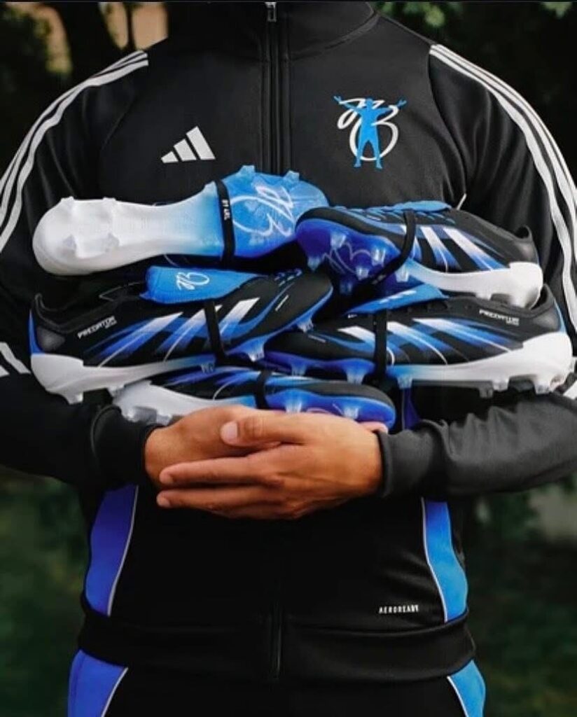 Это должны были быть современные adidas Predator в сине-черно-белой расцветке. Главный посыл кампании был в том, чтобы отметить начало карьеры Джуда — бутсы посвятили «Бирмингем Сити», за который англичанин выступал до 2020 года.