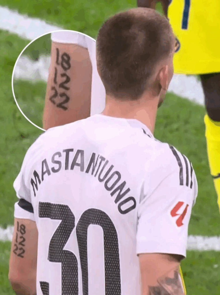 В соцсетях обратили внимание на новую татуировку на руке у Франко Мастантуоно. Новичок «Реала» набил на задней стороне плеча дату 18.12.22. Что она обозначает?