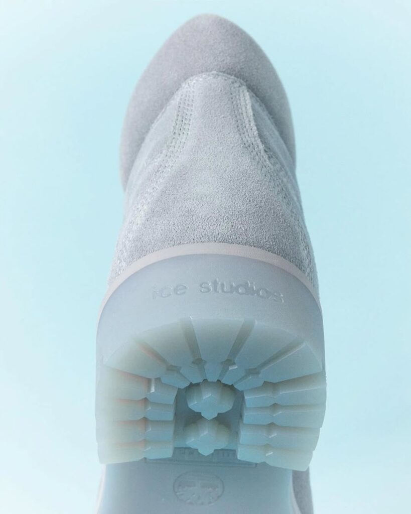 Ботинки сменили цвет — узнаваемый желто-коричневый сменился на холодный серый. В таком же цвете выполнили резиновую подошву. Ну и по всему ботинку разместили логотипы Ice Studios. Стиль!