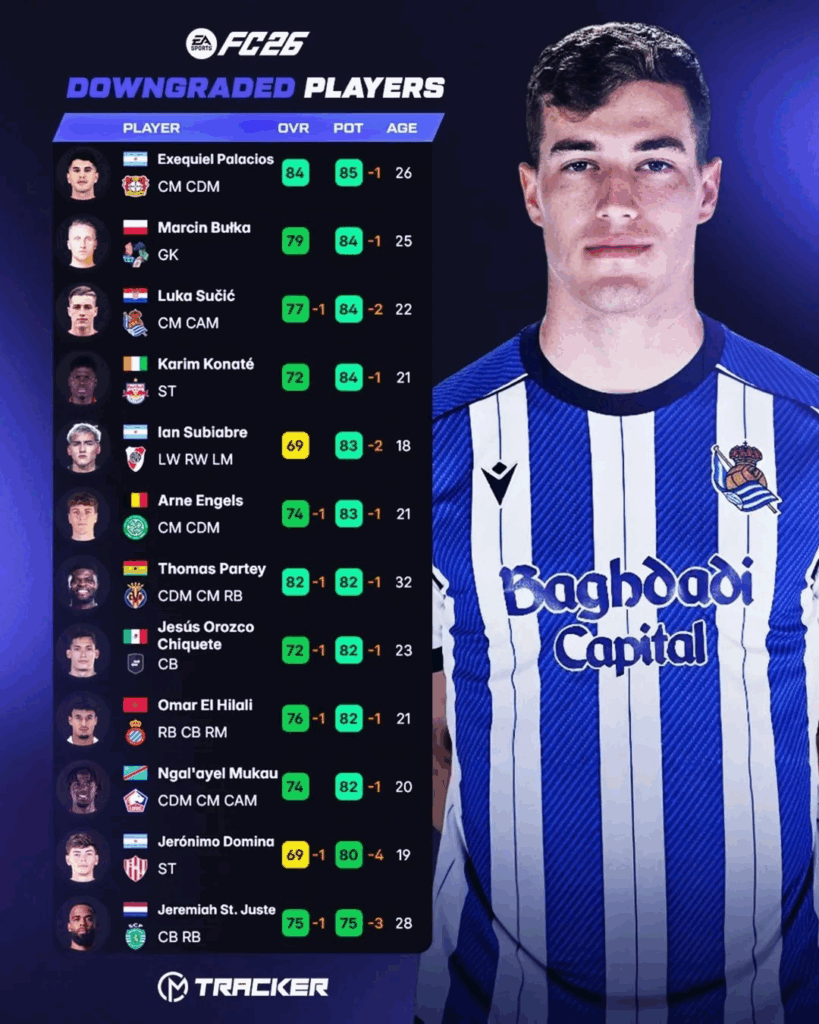 Главным неудачником обновления стал Херонимо Домина — аргентинцу урезали потенциал аж на четыре пункта. Также пострадал Лука Сучич — это экс-вундеркинд всех футсимов, у которого пока не получается засиять в «Сосьедаде».
