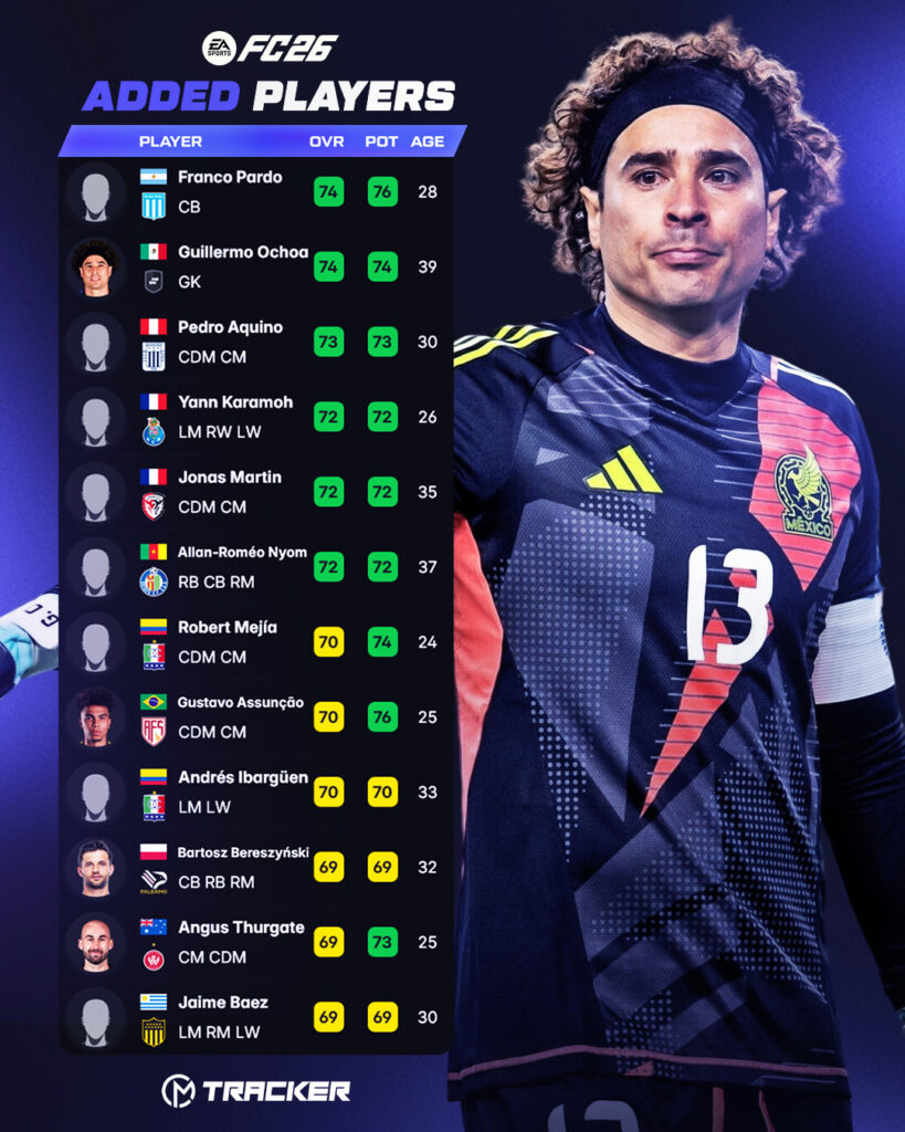 Список добавленных игроков же выглядит не слишком воодушевляюще, но зато теперь в игре появился легендарный Гильермо Очоа. В игре он является свободным агентом, хотя в реальной жизни играет за АЕЛ, выступающий в чемпионате Кипра.