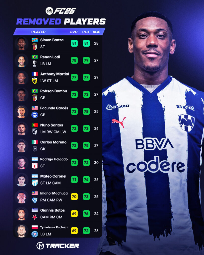 Однако есть и более крупные изменения: из игры удалили целую пачку игроков, а взамен напротив, добавили с десяток знакомых имен. Так, из игры пропал, например, Антони Марсьяль — в сентябре он перешел в мексиканский «Монтеррей», которого в FC 26 нет.