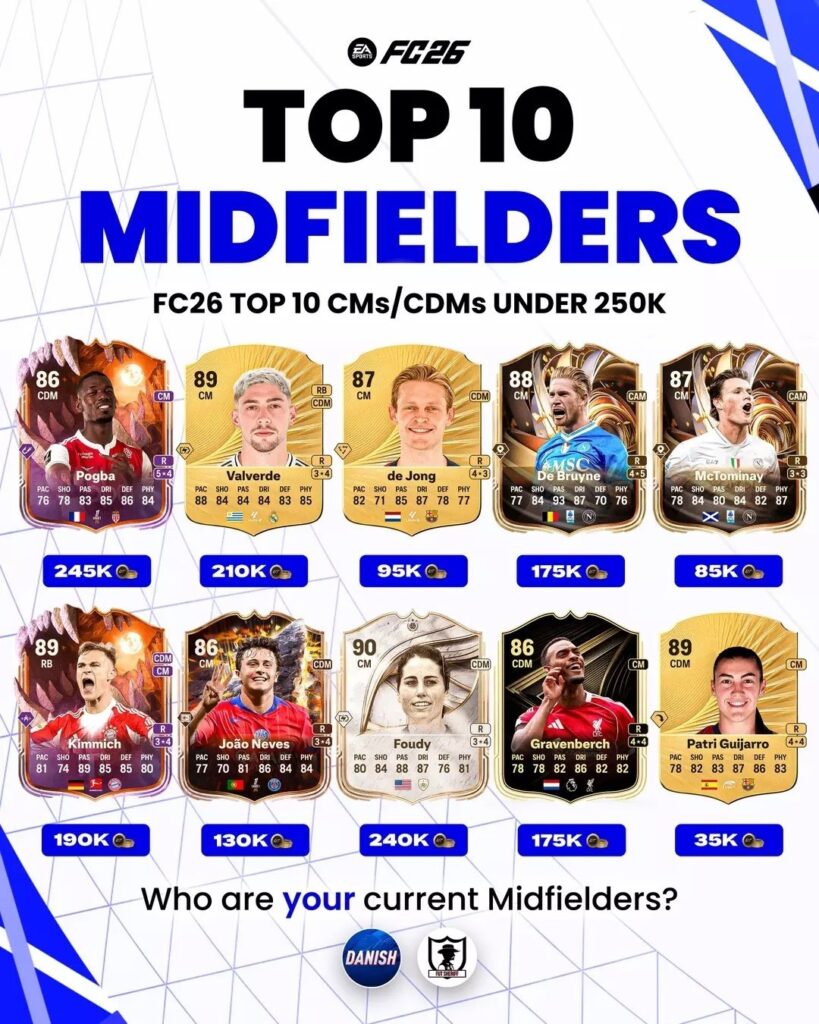 Продолжаем собирать мощную команду в EA Sports FC 26. Сегодня поговорим о полузащите. Подготовили список из десяти лучших футболистов до 250 тысяч игровых монет.