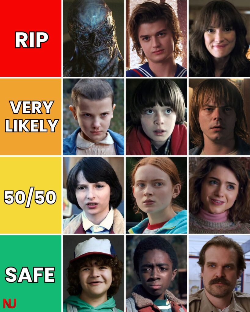 Аккаунт Stranger Things Memes в твиттере подготовил тир-лист с героями «Очень странных дел» и расположил их в порядке от «Покойтесь с миром» до «Выживут»: