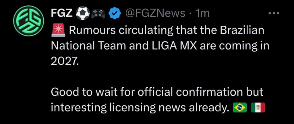 О бразильских клубах все так же ничего неизвестно, но есть вероятность, что в EA Sports FC с 2027-го появится мексиканская LIGA MX.