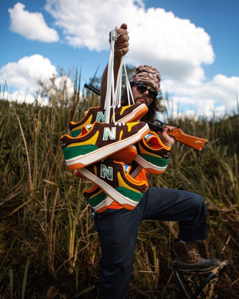 New Balance приготовили отличный подарок для тех, кто предпочитает яркие кроссовки. И это необычная коллаборация с охотничьим магазином. Это пара, посвященная охоте на уток.