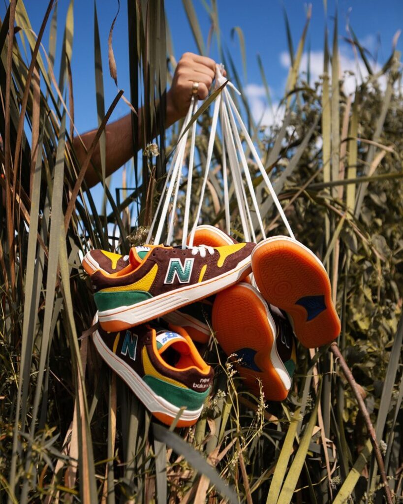 Дизайн модели Rukus x New Balance Numeric 480 «Mallard Duck» вдохновлен образом кряквы. Переливающийся логотип «N» напоминает голову уточки. Коричневые вставки из кожи символизируют перья птицы, а оранжевые подкладка и подошва в форме чашки напоминают клюв кряквы.