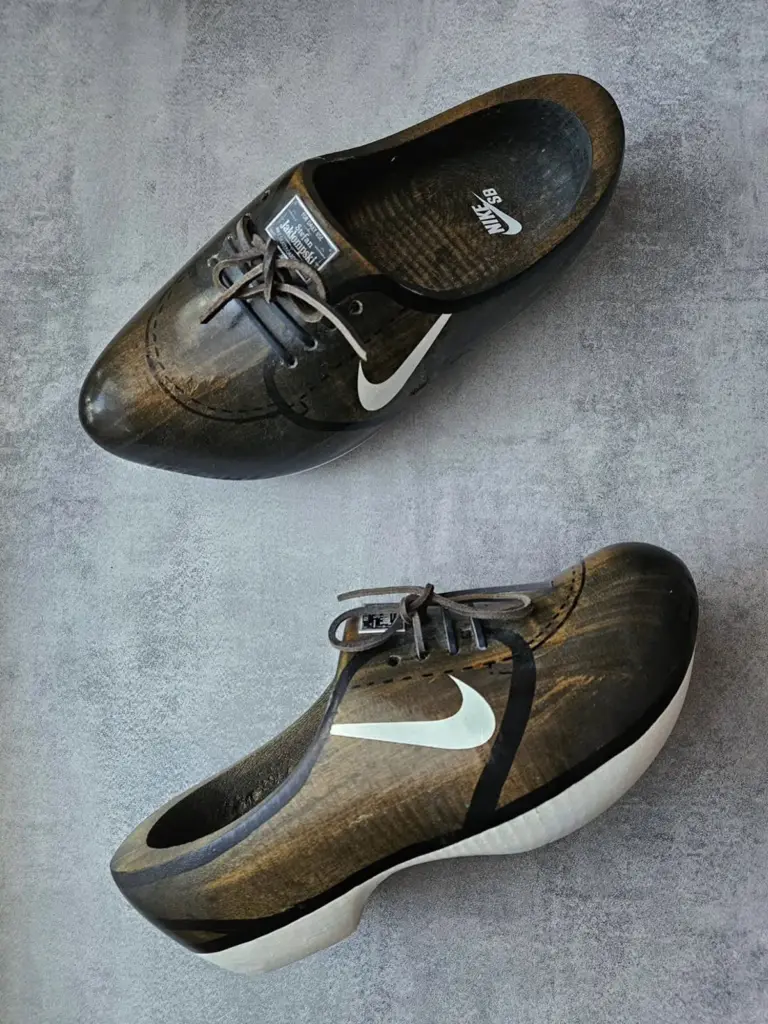 На днях в соцсетях реселлера, известного как Donnie B. Soles, появился пост с деревянными кроссовками Nike. Коллекционер уверяет, что это редчайший оригинал прямиком из 2015 года. Пару специально стилизовали под традиционные голландские кломпы, но сколько именно таких было изготовлено, никто не знает.