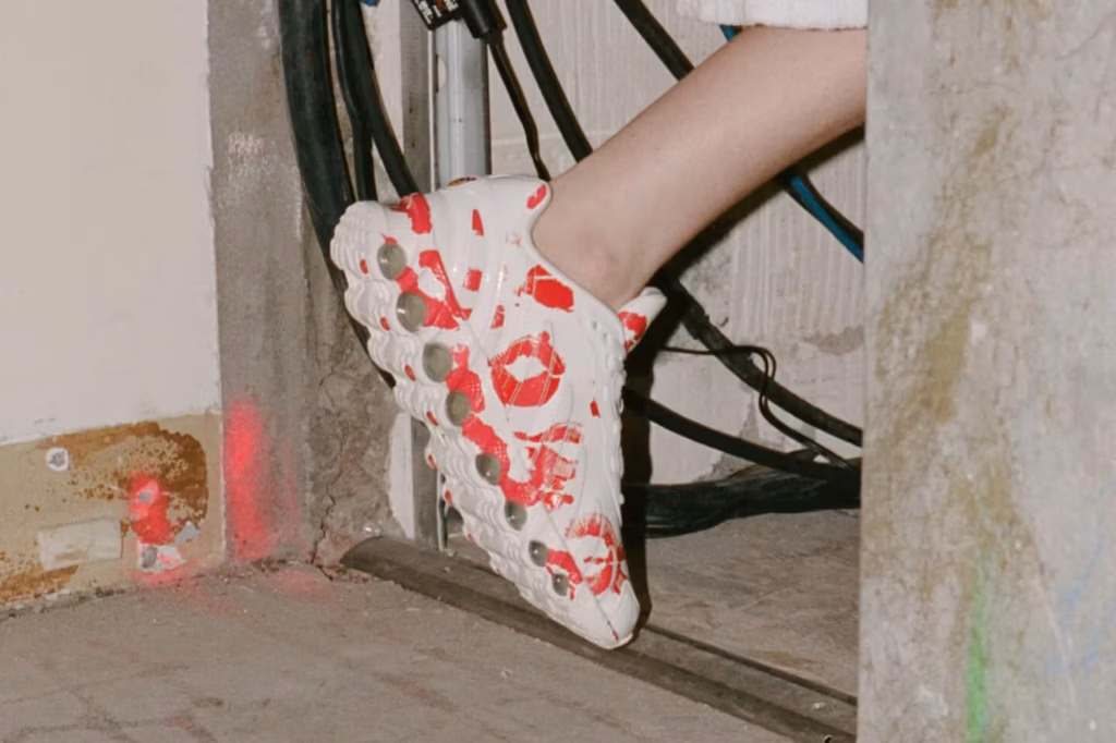 Vaquera написала собственное любовное письмо кроссовкам Nike Air Max DN8, осыпав их поцелуями. Да, принт изображает следы губной помады. Металлические детали, глянцевая кожа и полупрозрачная подошва добавляют модели завершенность.