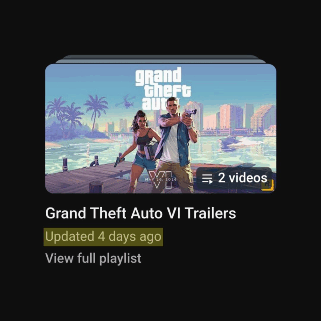 Новый ролик стали активно обсуждать после того, как Rockstar обновили плейлист с трейлерами GTA VI на YouTube. При этом сам плейлист не обновился — там так и находятся всего два видео. Многие посчитали, что третий трейлер уже загружен, просто скрыт.