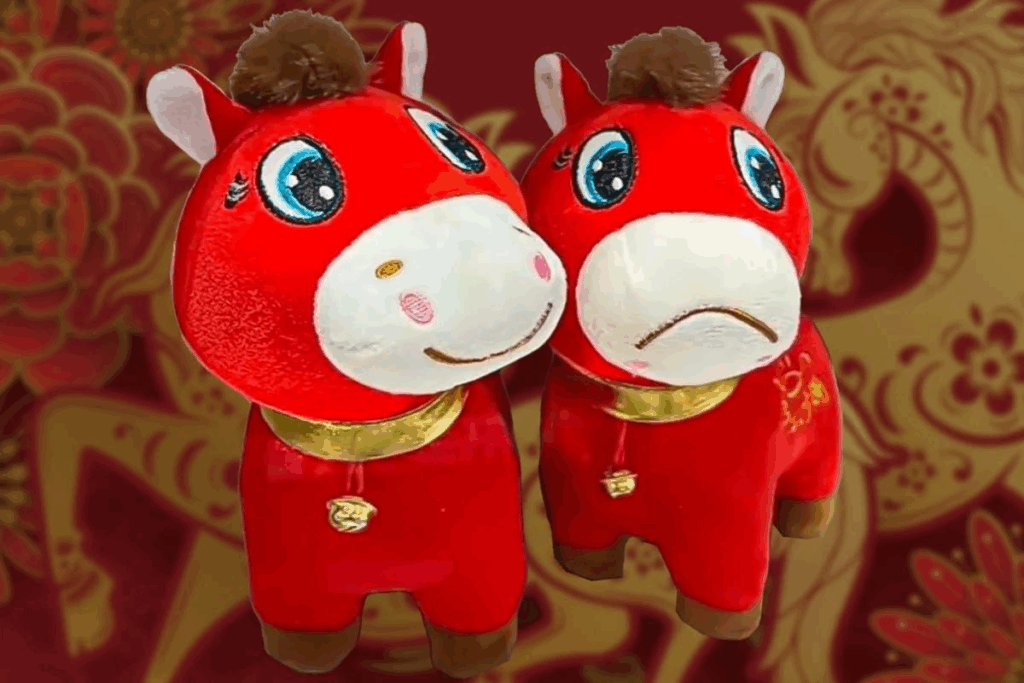 Конечно, символ года в Китае меняется каждый год, но не каждый раз подобные игрушки становятся хитами продаж. Тут все дело в ошибке на производстве: один из работников случайно пришил мордочку лошади вверх ногами: получилась не улыбающаяся игрушка, а грустная.