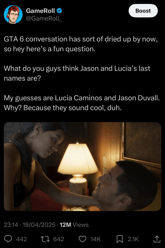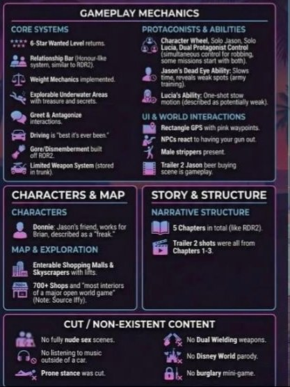 Слив информации о GTA 6, о котором идет речь, произошел в июне 2025-го. Тогда аккаунт GameRoll в Twitter набросал длинный пост с подробностями грядущей игры. Ранее владелец аккаунта уже точно предсказал фамилии главных героев — Джейсона Дюваля и Люсии Каминос.