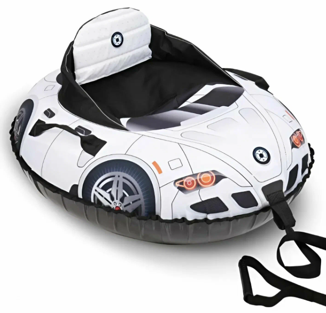 Еще один крутой тюбинг для вашего малыша. Производитель гарантирует долгий срок службы, ведь ватрушка сделана из тентовой ткани с высокой плотностью. Размер тюбинга – 73 сантиметра, быстрый доступ к камере обеспечивается за счет молнии, а максимальная нагрузка айтема – 35 килограммов.