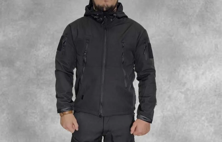 Тактический костюм от Soft Shell создан для экстремальных погодных условий. Куртка сделана из полиэстера с тефлоновым покрытием и флиса. Из-за плотности материалов любая вода и любая грязь, попадающие на костюм, не будут задерживаться на поверхности. Куртку можно регулировать: затянуть капюшон и низ под необходимые вам параметры.