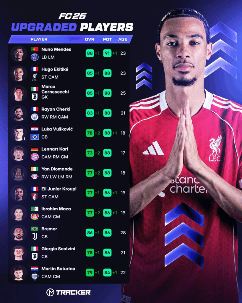 Больше всего фанатов карьеры порадуют апгрейды Леннарта Карла, Яна Диоманде, Ибрахима Мазы, Луки Вушковича и Илая Джуниора Крупи. Все они — одни из лучших игроков для покупки на старте нового сейва.