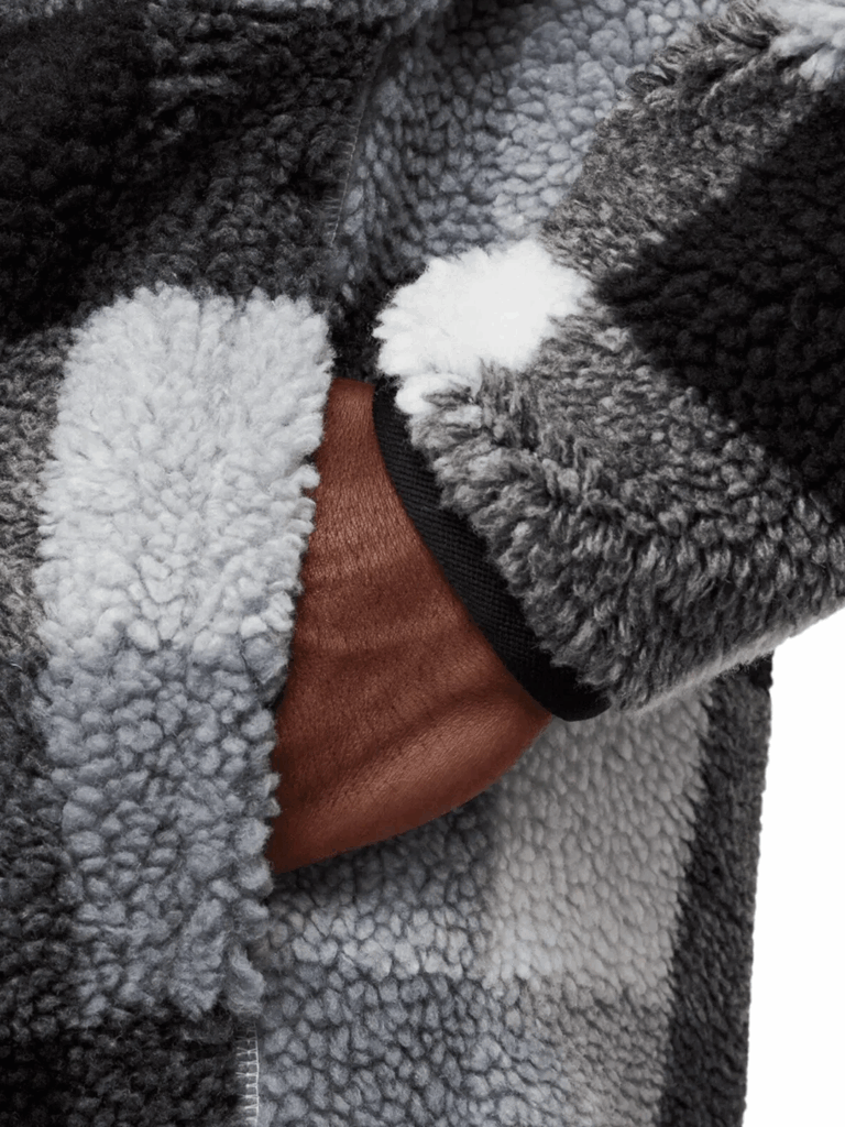 На Яндекс Маркете это одна из самых популярных кофт из флиса. Данная модель черно-бело-серого цвета имеет стильный шахматный узор: такую кофту можно как надевать под куртку, так и носить в качестве верхней одежды.