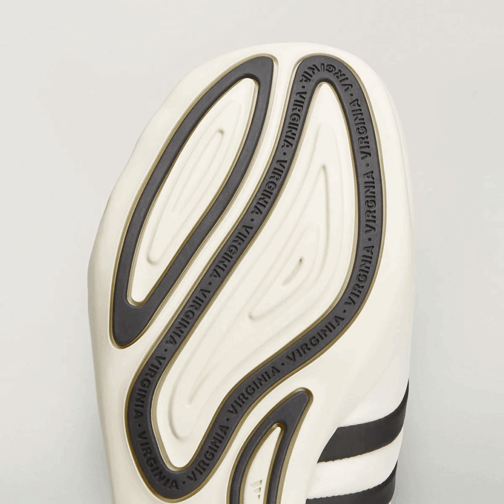 Модель называется adidas VIRGINIA Vario 3 Flat Earther — это обувь без шнурков, но, кажется, на хитрой застежке на липучке. На носке можно рассмотреть отверстия для вентиляции, подошва здесь плоская.