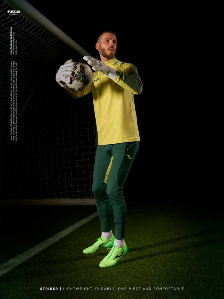 Вероятно, Де Хеа — первая звезда в составе Joma. Испанец стал лицом новой модели «Striker» — иронично, учитывая что название переводится как «нападающий».