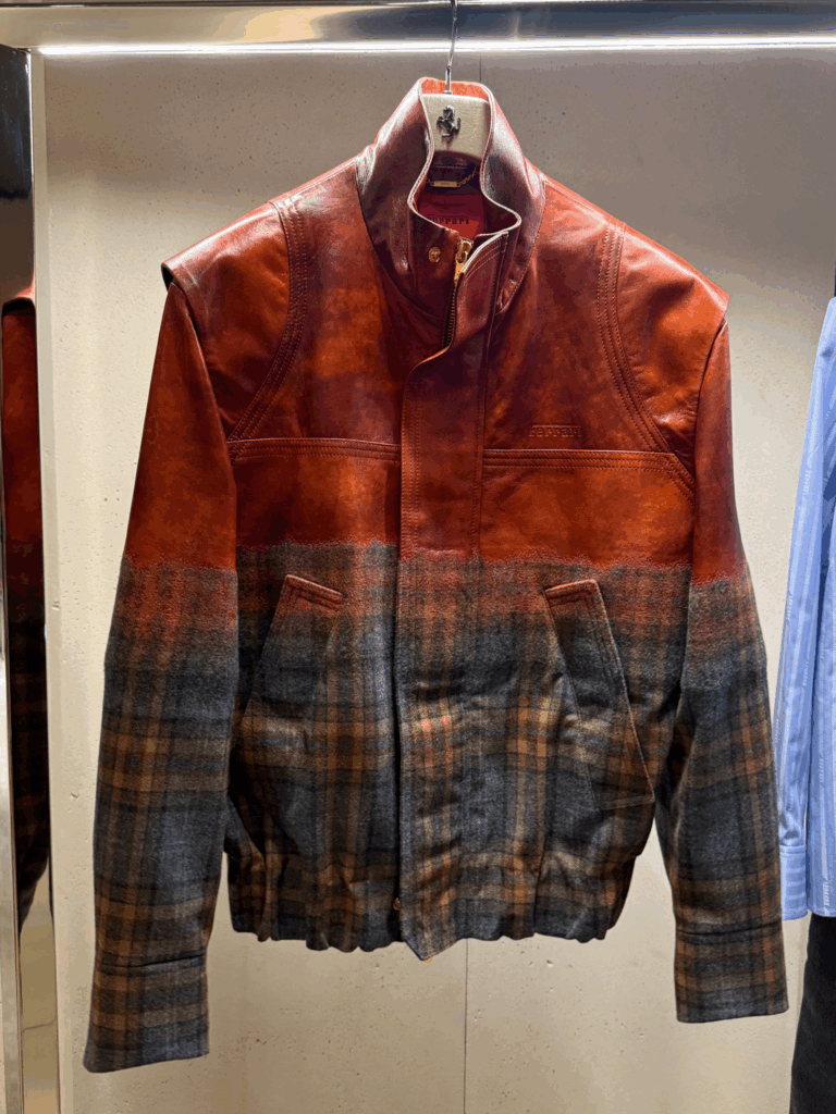 В соцсетях уже несколько дней вирусятся фото нового релиза от самих Ferrari. Это необычная кожано-шерстяная куртка: она сделана одновременно из двух материалов.