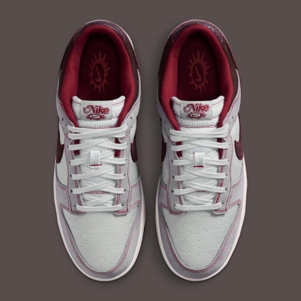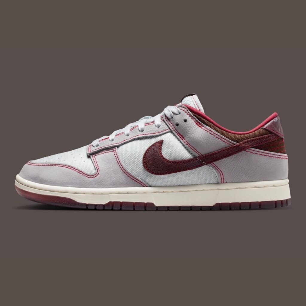 Nike снова играет на ностальгии и тренде на винтаж: в 2026 году компания переосмыслит одну из своих культовых моделей, придав ей эффект «искусственного старения». Кроссовки Dunk Low Canvas «Pure Platinum/Burgundy Crush» намеренно сделают поношенными – с потертостями, выцветшими деталями и общим ретро-вайбом.