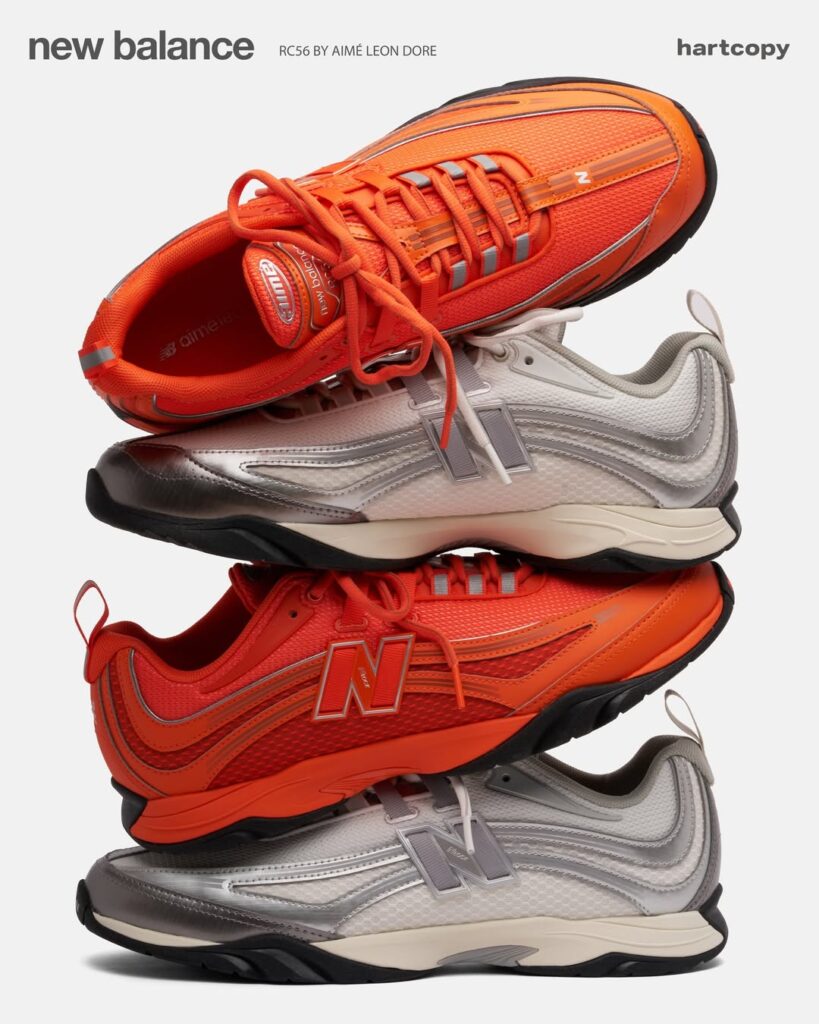 Вторая пара, Aimé Leon Dore x New Balance RC56 «Team Orange», – для поклонников ярких экспериментов. Кроссовки в насыщенном оранжевом цвете с металлическими акцентными вставками.