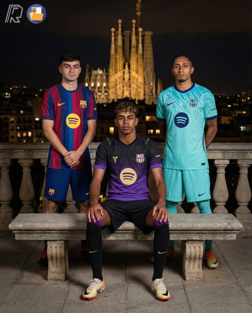 В сеть утекли изображения всех трех комплектов Барселона на сезон-2026/27. Особое внимание привлекли гостевые джерси: по слухам, они вдохновлены наследием Коби Брайанта – отсылают к его связи с клубом. Домашняя и третья формы, конечно, тоже получили обновленный дизайн.